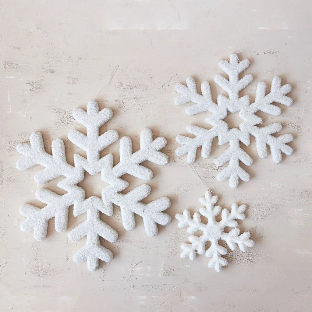 Flocked Snowflake Ornament | White | 3 Sizes Available